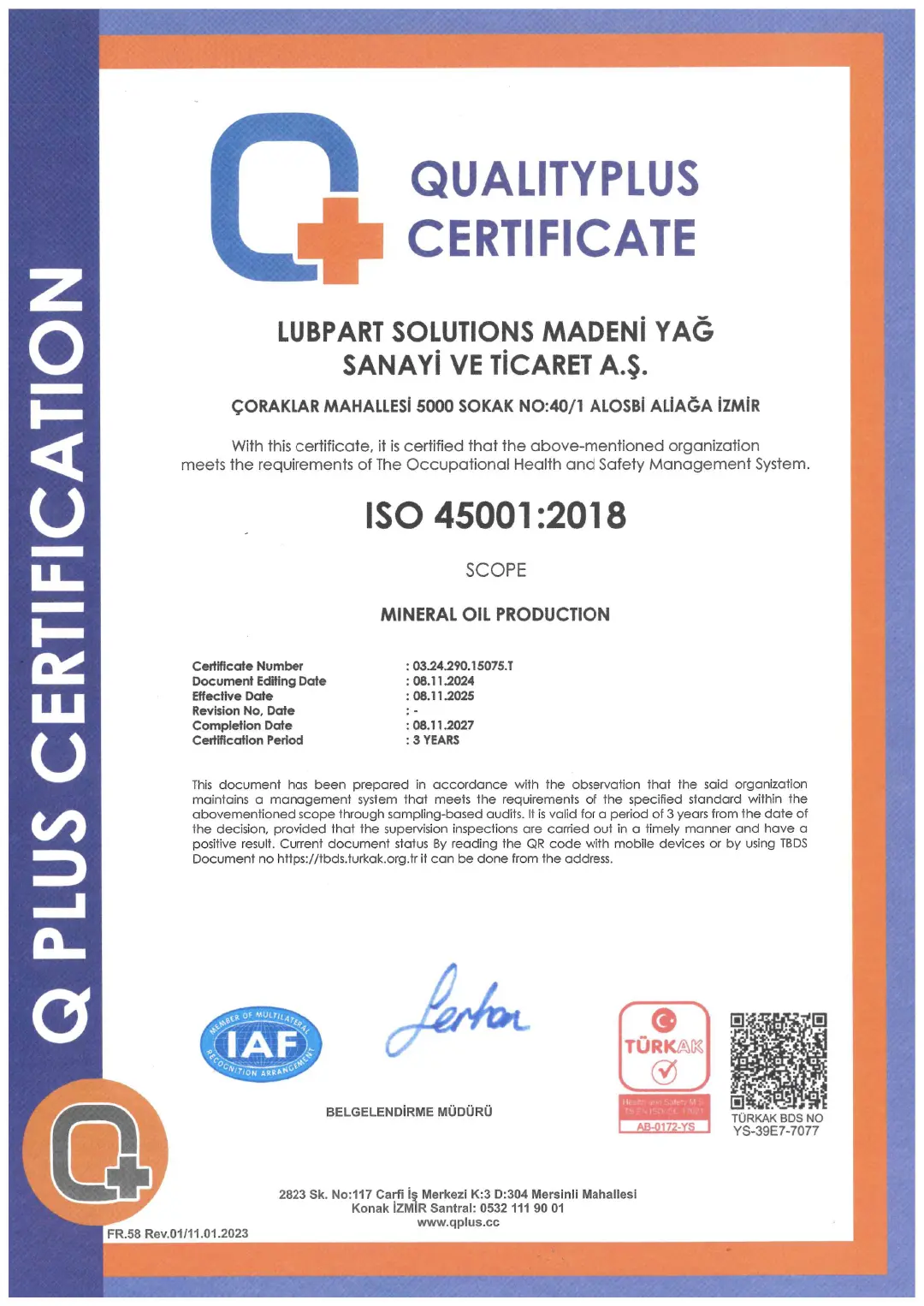 By integrating these values into our day-to-day operations, LUBPART not only ensures compliance, but also fosters a forward-thinking corporate culture that prioritizes quality, safety, and environmental responsibility.