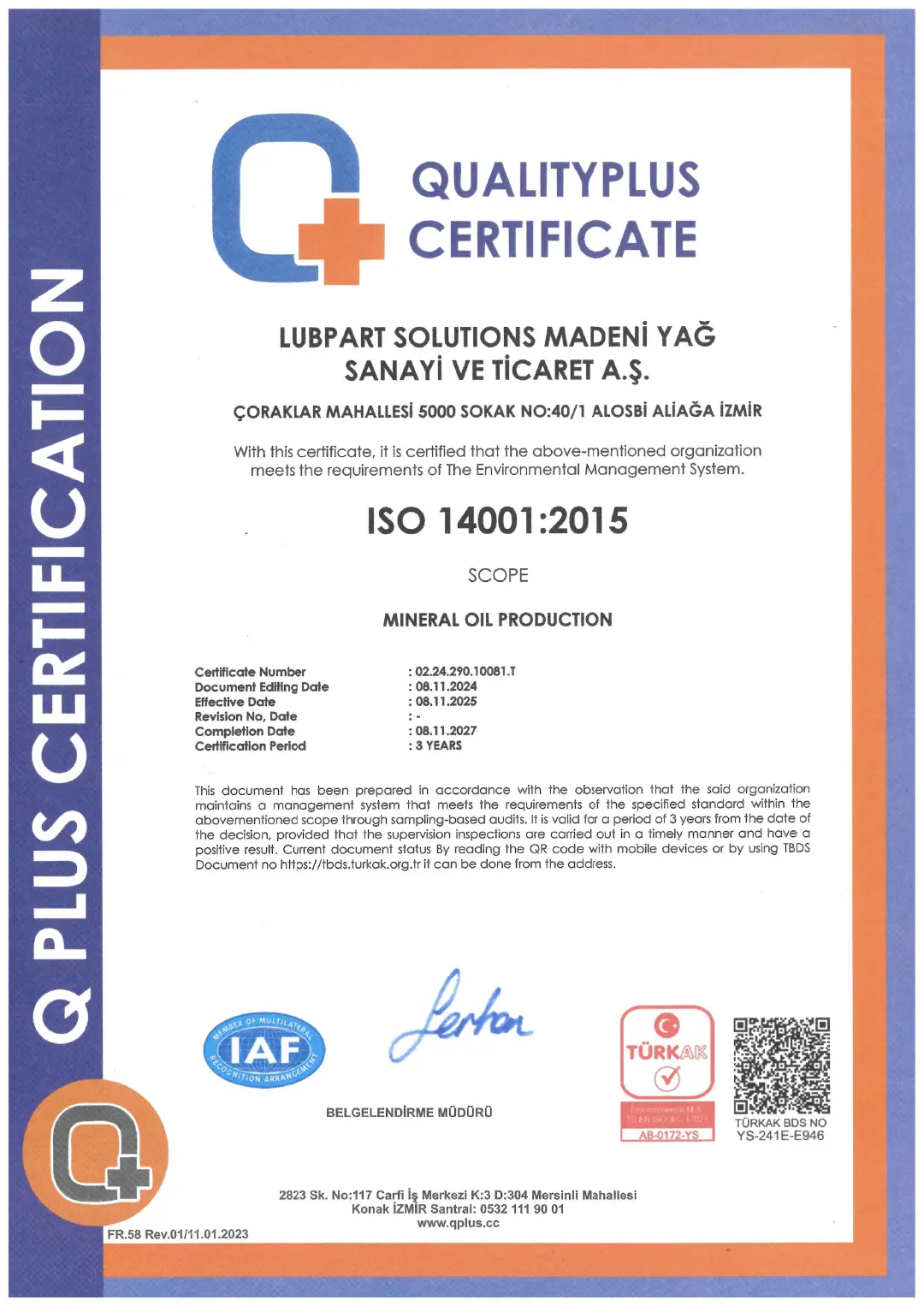 With a strong commitment to continuous improvement, LUBPART has established an Integrated Management System aligned with internationally recognized standards: